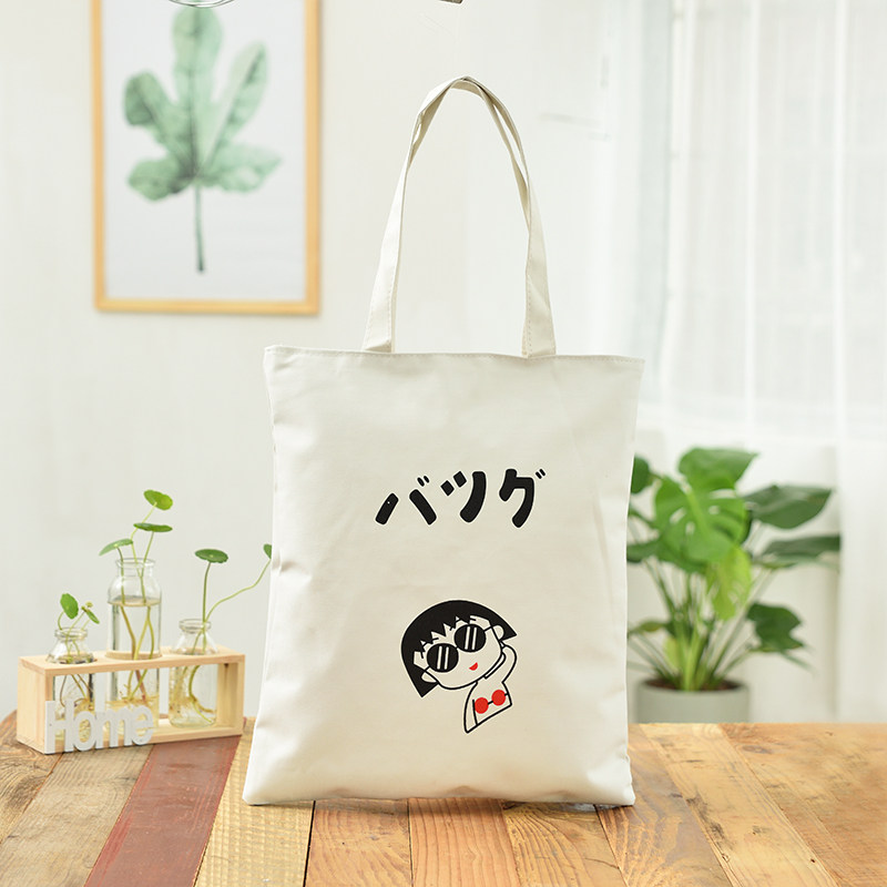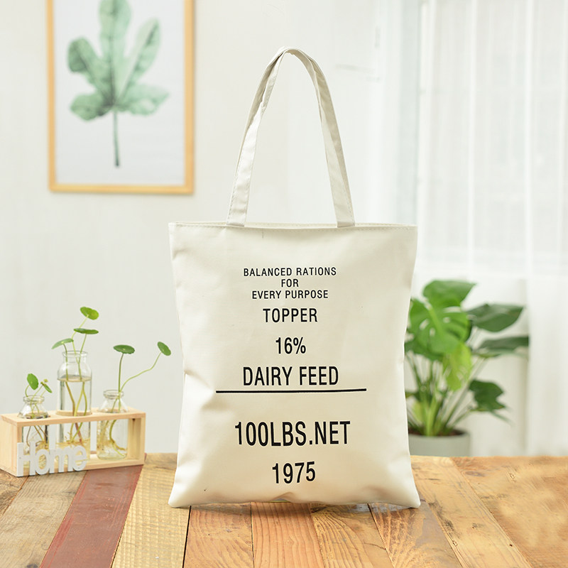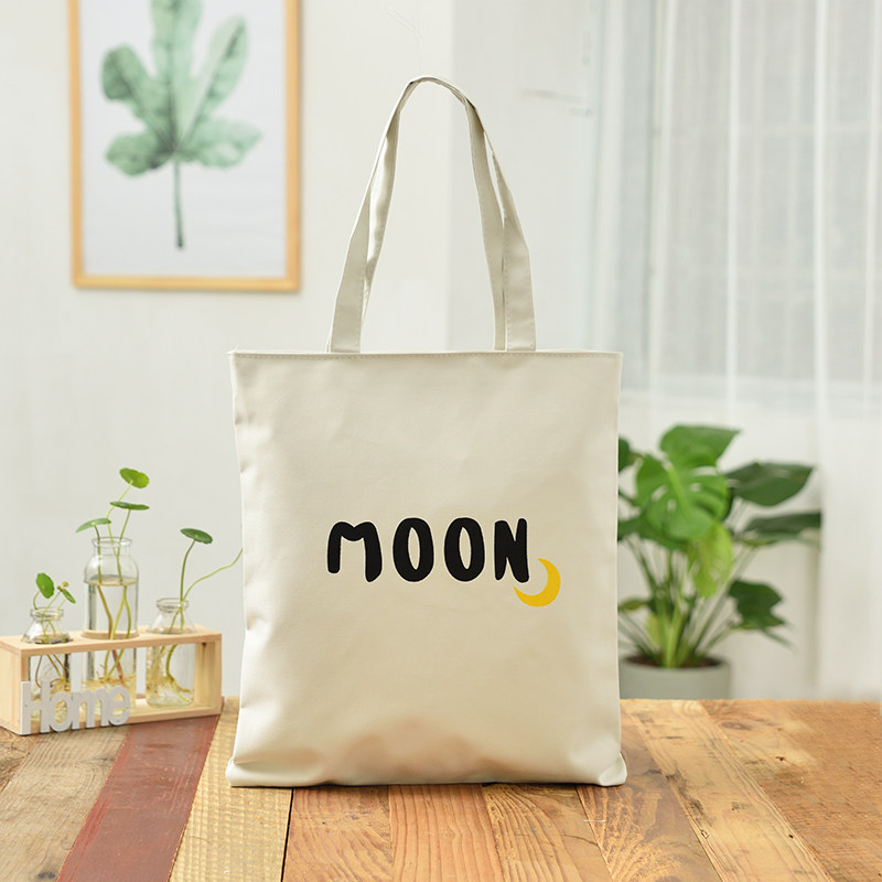 字母手提帆布包女单肩包韩国简约文艺学生书包白色环保购物帆布袋