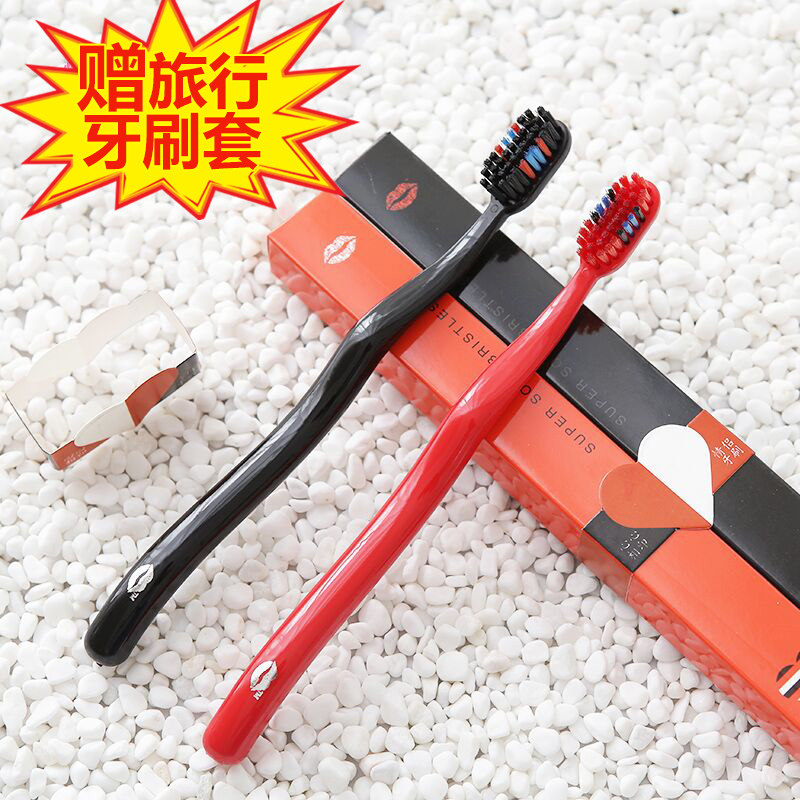 2送1魅齿情侣牙刷2支 去牙结石菌斑口臭牙齿美白小头中软毛成人