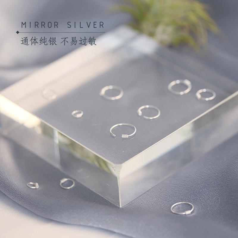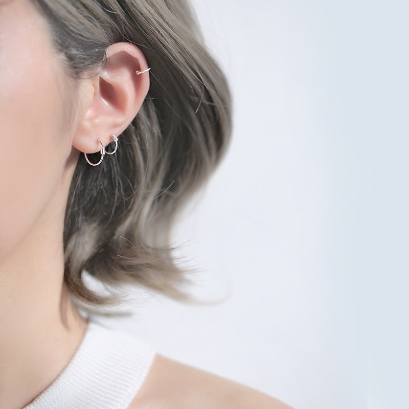 时髦风小麋人S925纯银手工绕丝精致圆形耳环耳圈耳骨钉耳钉日韩女