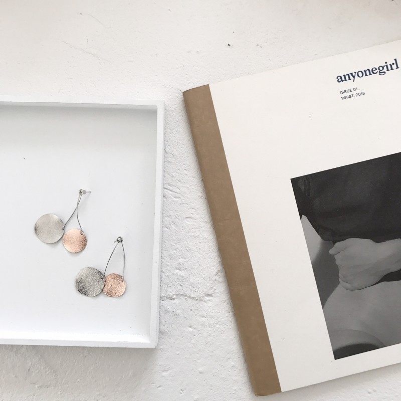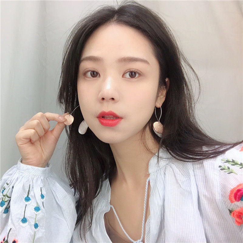 洋气百搭磨砂质感圆片耳环韩国简约气质撞色耳钉后挂式耳坠女R903