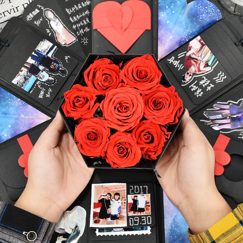 永生玫瑰花盒保鲜干花DIY手工爆炸盒子材料男女友情人节生日礼物