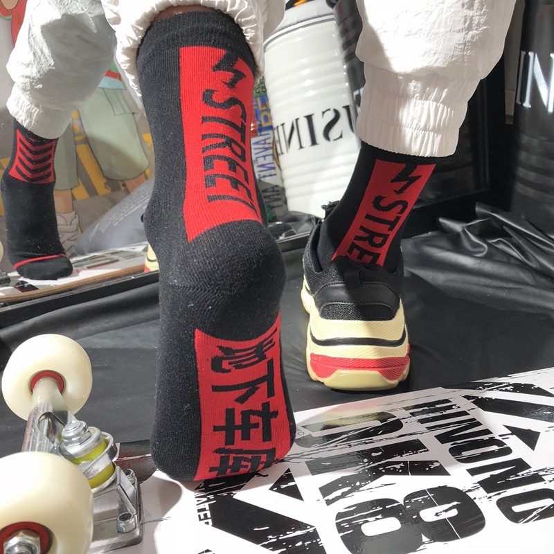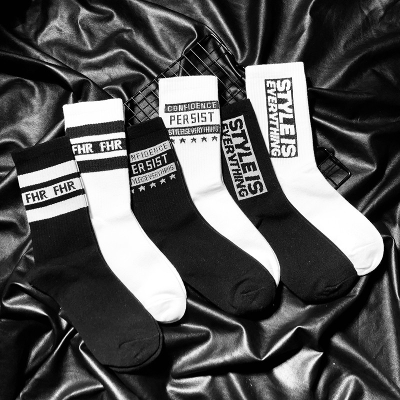 潮牌ulzzang原宿风字母条纹运动中筒棉袜子 男女情侣滑板袜长袜潮