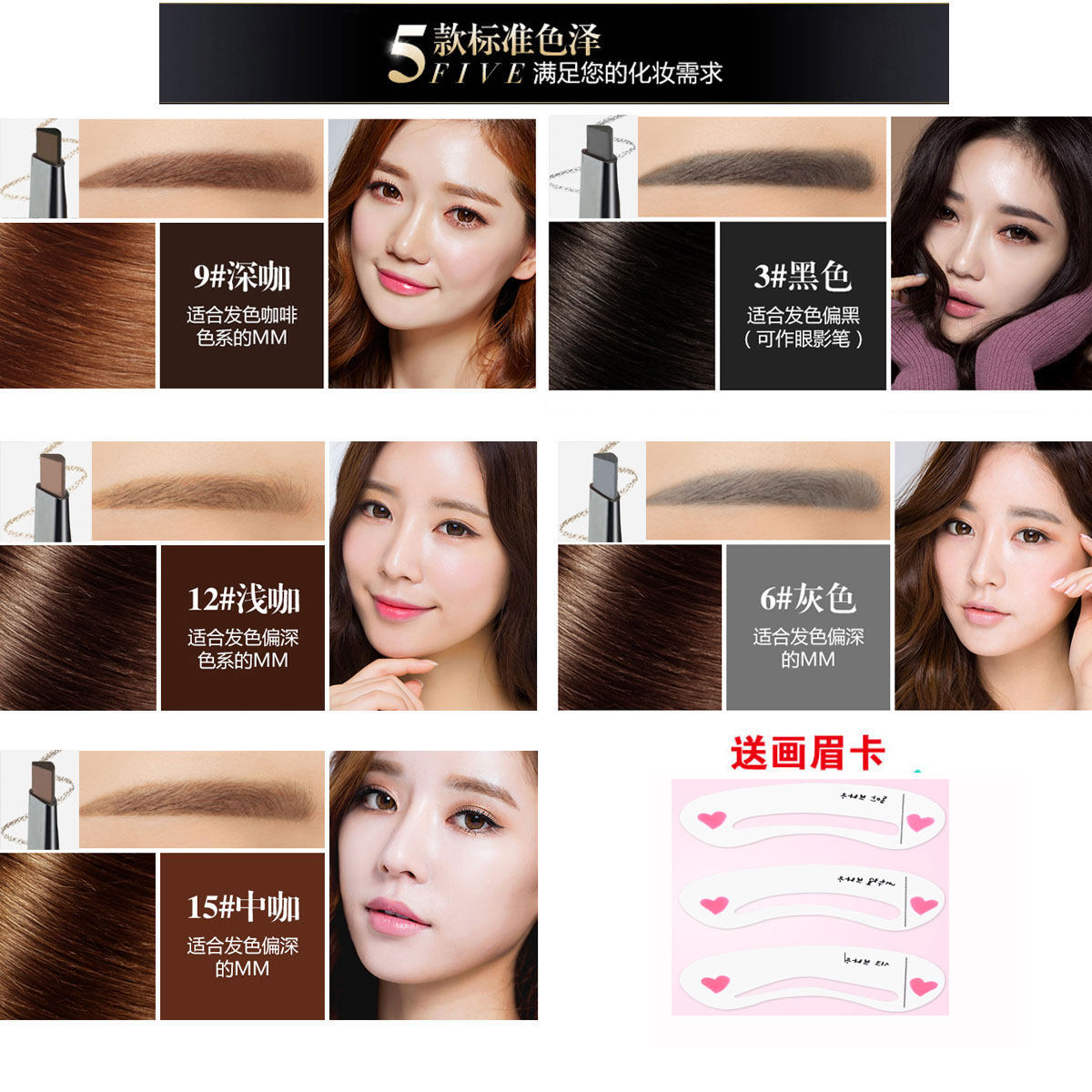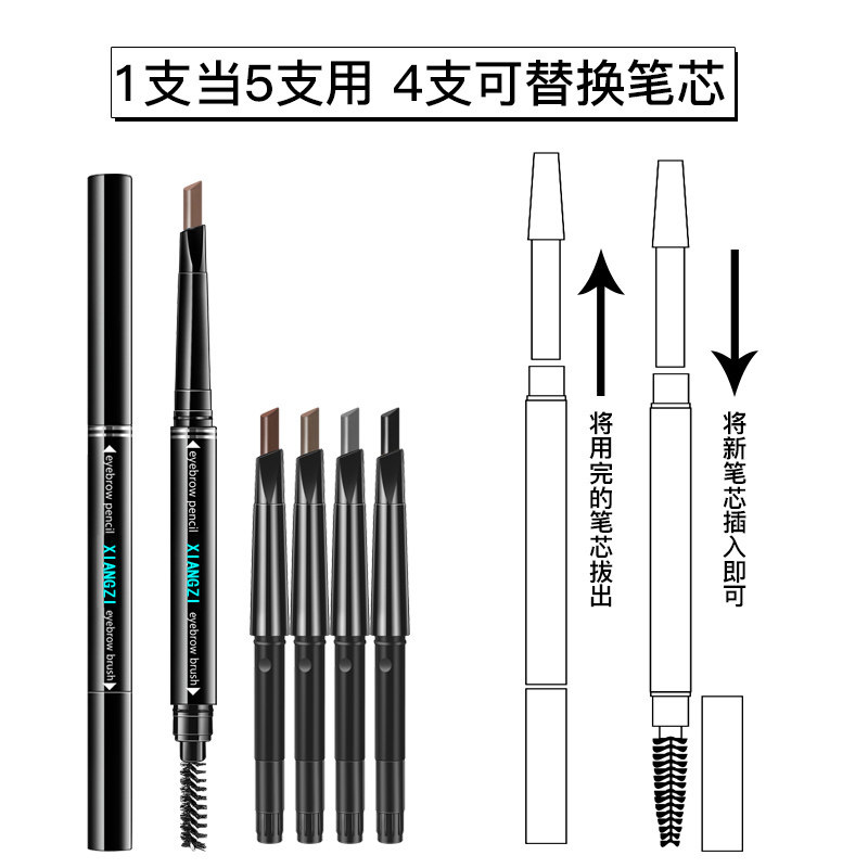 5支盒装 双头旋转眉笔防水防汗不脱色持久不晕染一字眉画眉送眉卡