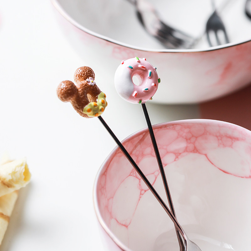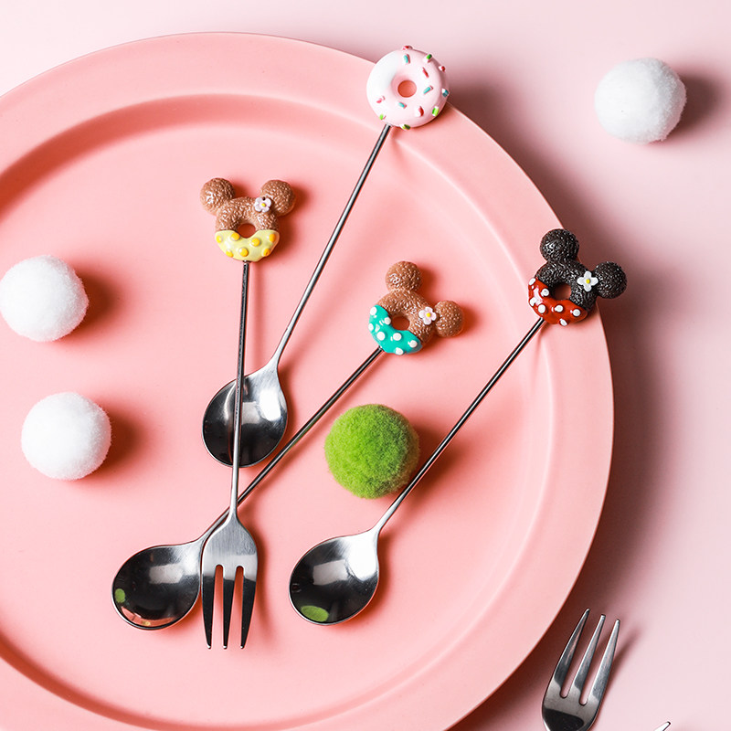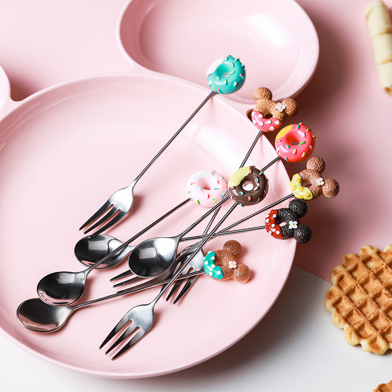 肆月 甜甜圈 徐三村不锈钢创意卡通水果叉子甜品叉勺咖啡勺搅拌勺