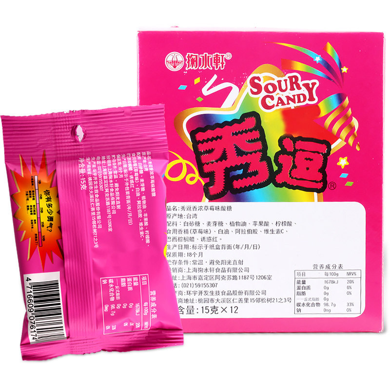 台湾进口秀逗超级酸水果糖6口味15g*24包 整蛊搞怪怀旧网红零食品