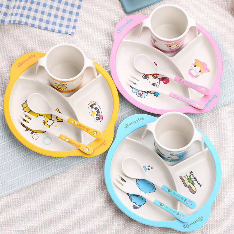 竹纤维儿童餐具吃饭辅食碗宝宝餐盘婴儿分格卡通饭碗叉子勺子套装