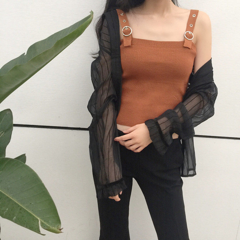 春夏女装韩版百搭修身短款露脐针织背心学生外穿打底小吊带上衣潮