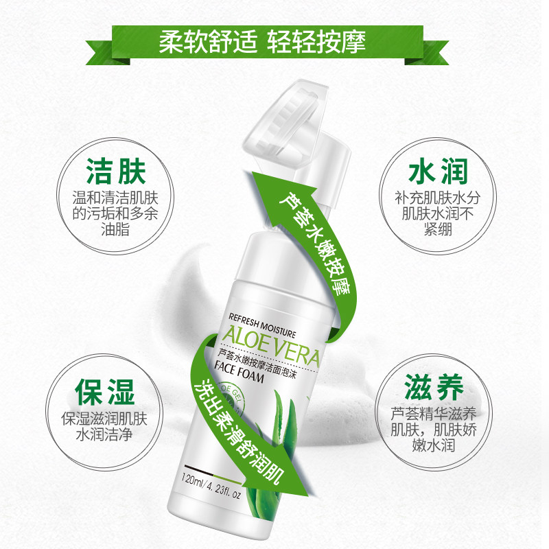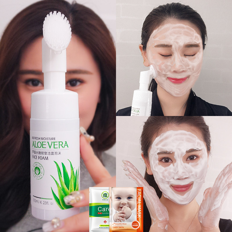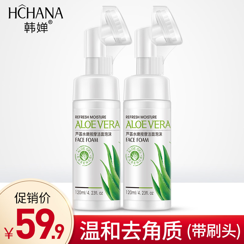 韩婵芦荟泡沫洗面奶提亮肤色补水保湿清洁控油黑头学生女男