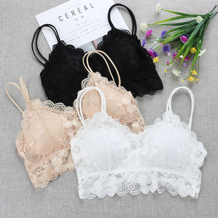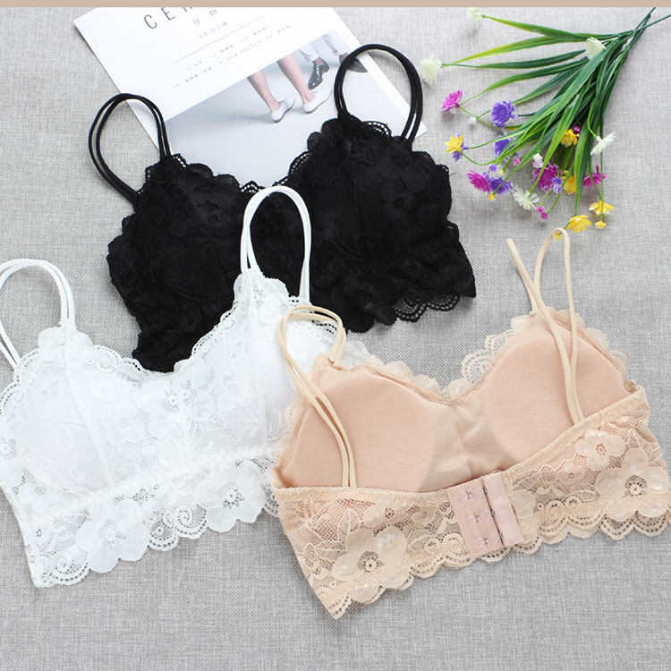 蕾丝排扣抹胸短款性感打底美背文胸吊带背心学生高中少女裹胸内衣