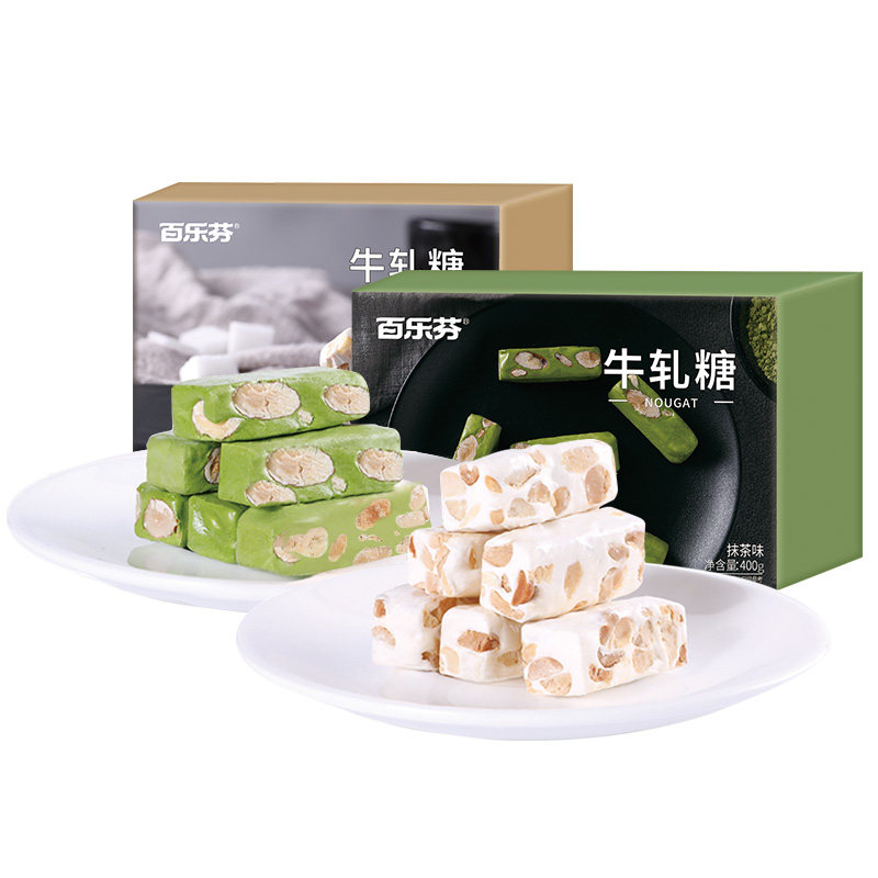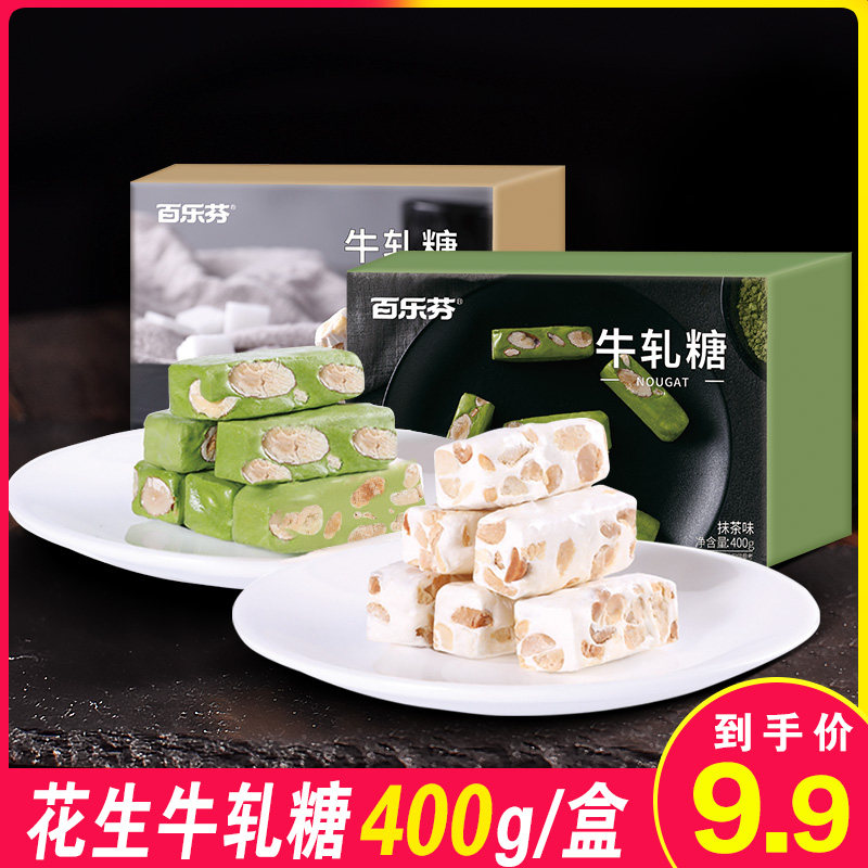 百乐芬手工牛轧糖400g抹茶花生咸牛扎软糖果儿童零食喜糖整盒批发