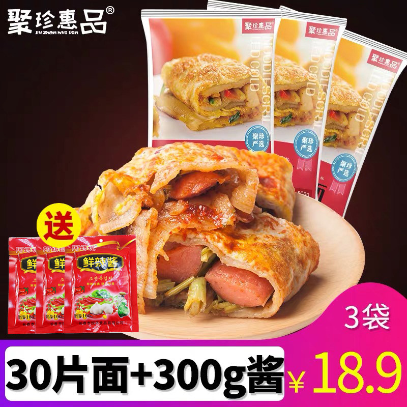 正宗烤冷面30片炒冷面家庭装东北小吃送酱包600gx3包真空包装
