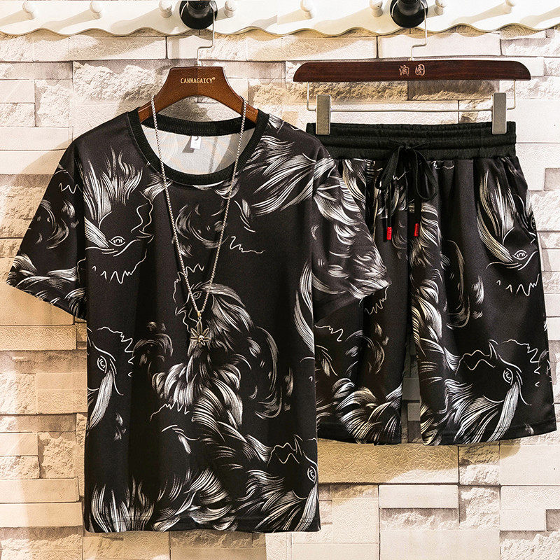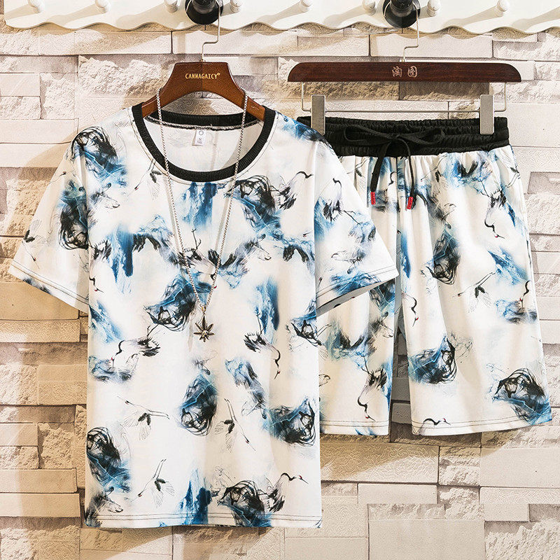 男士短袖t恤夏季短裤两件套青年休闲套装男装韩版修身学生上衣服