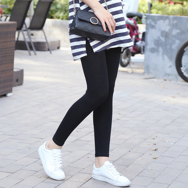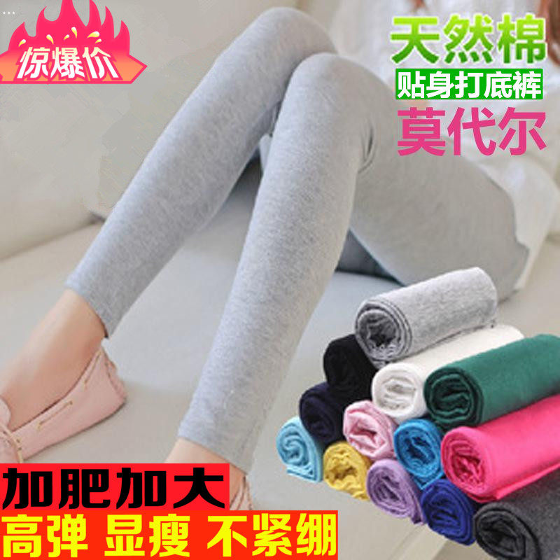 加绒新款女莫代尔九分打底裤胖mm外穿薄款高腰显瘦小脚裤弹力大码