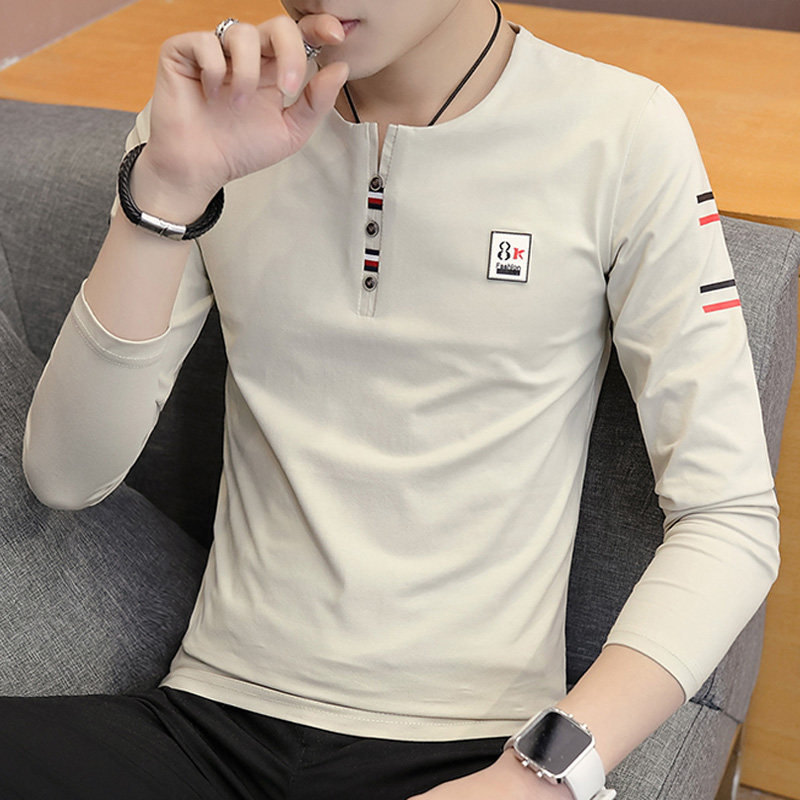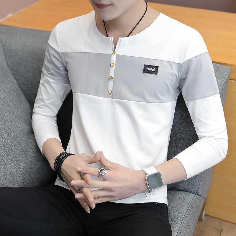 春季男士长袖t恤男韩版纯棉v领打底衫潮流男装修身体恤青年上衣服