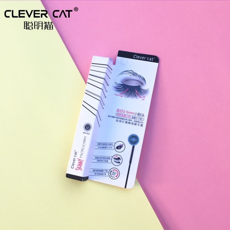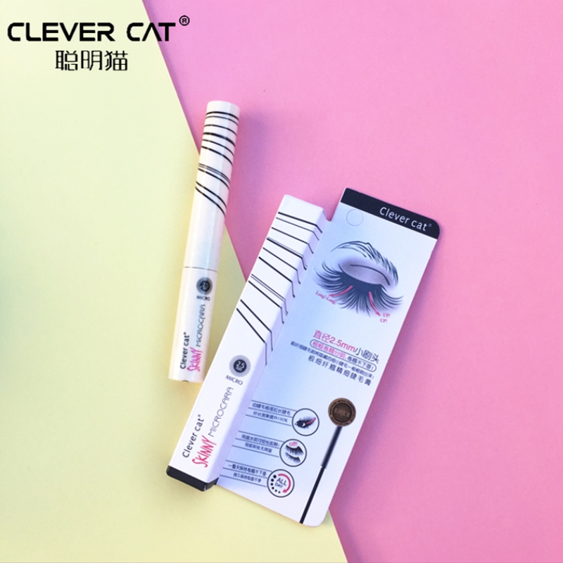 聪明猫极细头加长卷翘防水不晕染网红蓝色纤巧棕色睫毛膏小细头刷