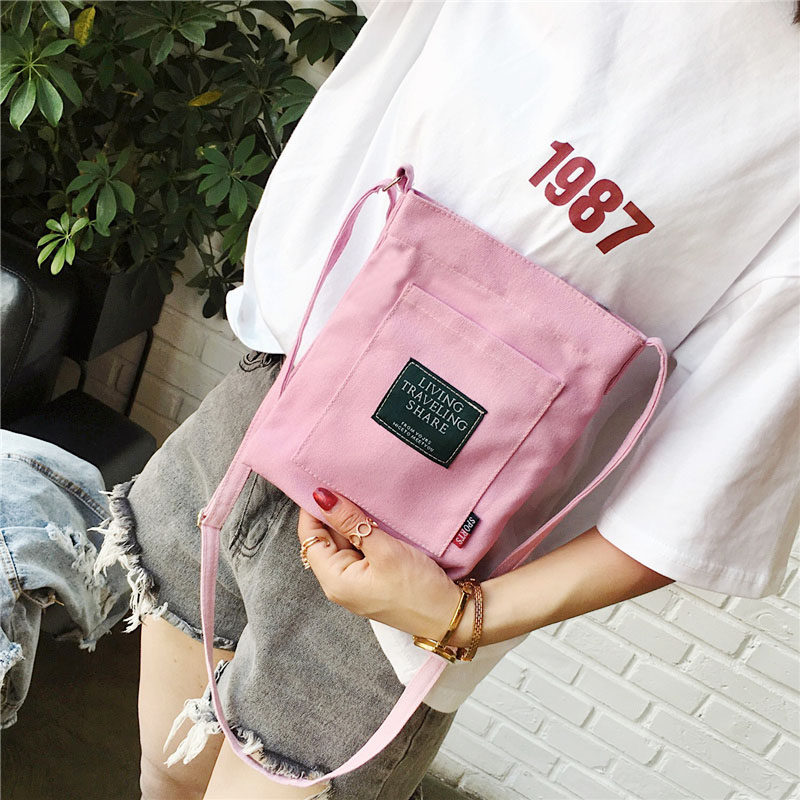 小包包女2019新款韩版布艺零钱手机包可爱单肩ins斜挎日系帆布袋