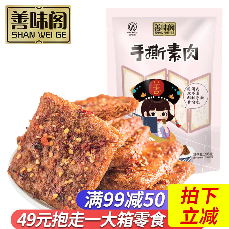 善味阁手撕素肉麻辣零食豆干香辣味豆腐干休闲零食小吃礼包205g