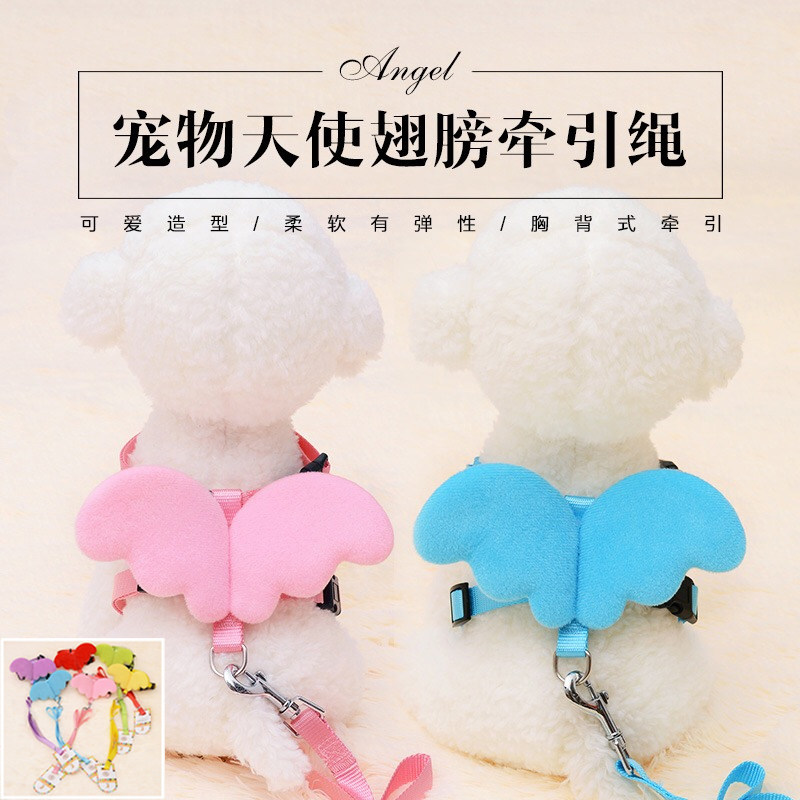 狗狗牵引绳天使翅膀胸背遛狗绳子泰迪可爱狗链子小型犬幼犬牵引带