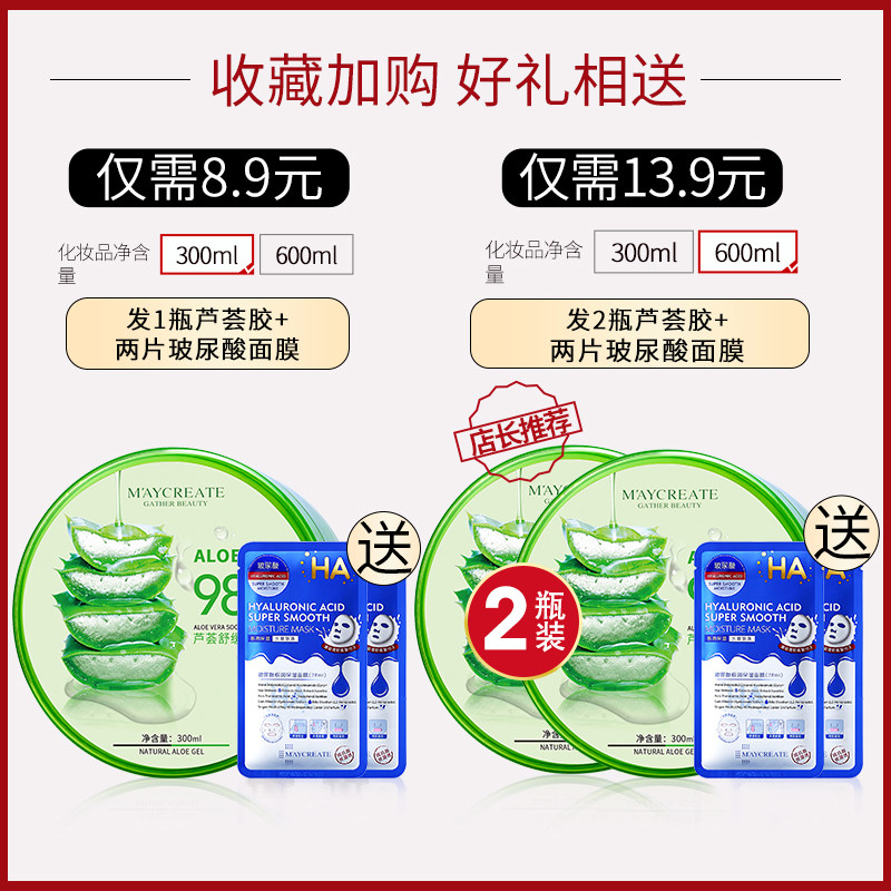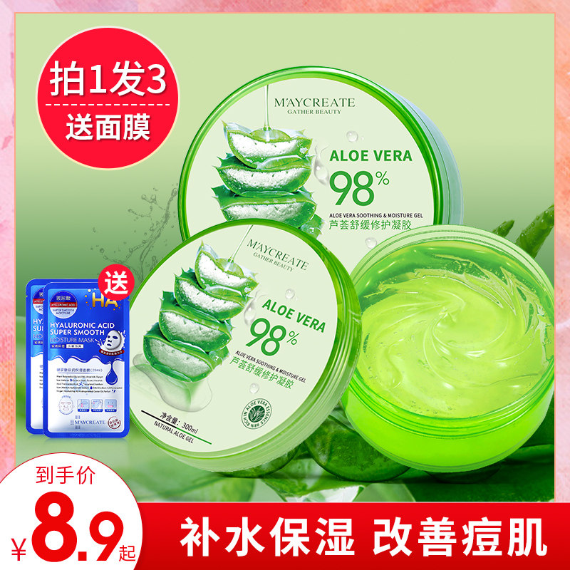 2瓶 芦荟胶正品去痘印祛痘膏补水保湿修复凝胶乳液面霜男女护肤品