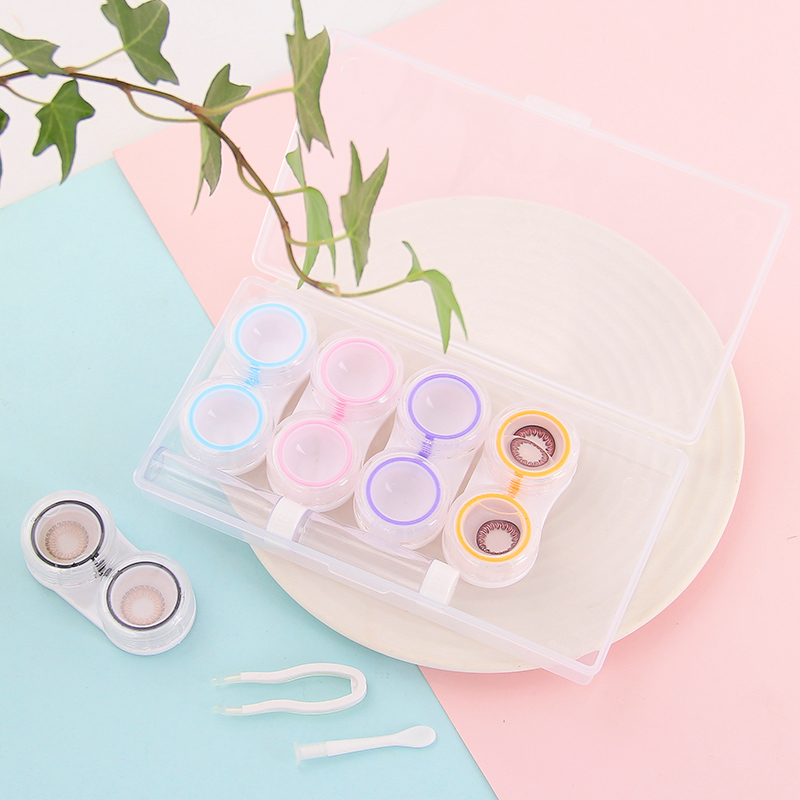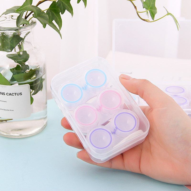 隐形眼镜盒双联盒简约便携多格收纳盒影形护理盒美瞳伴侣盒多副装