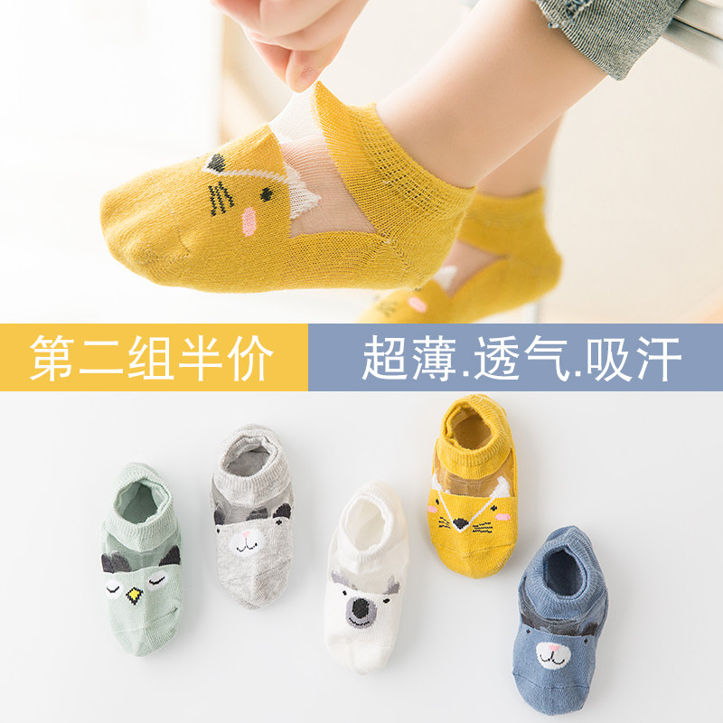 夏季男女童丝袜薄款水晶丝棉底2-12岁儿童宝宝船袜隐形短袜子卡通