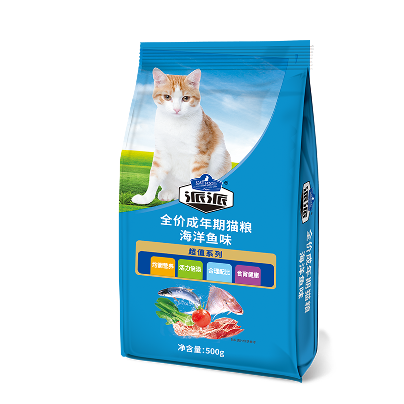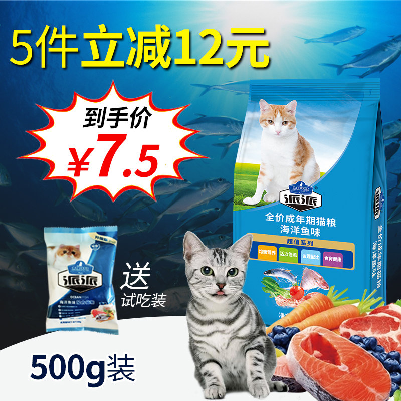 9.9包邮派派猫粮海洋鱼味特价幼猫成猫全猫种天然挑嘴猫主粮500g