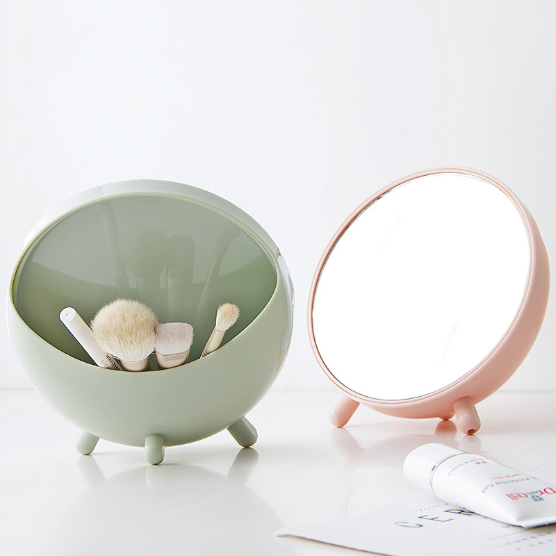 便携化妆镜 桌面带储物盒圆形小镜子 学生随身镜台式公主镜梳妆镜