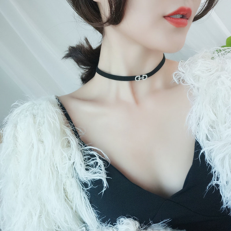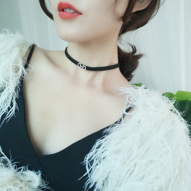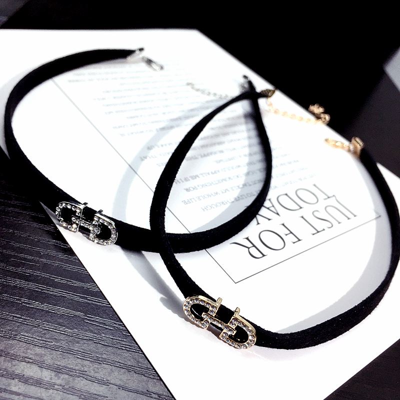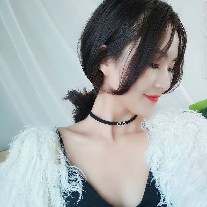 黑色网红款项链字母锁骨链短款颈带项圈choker脖链颈链饰品韩国女