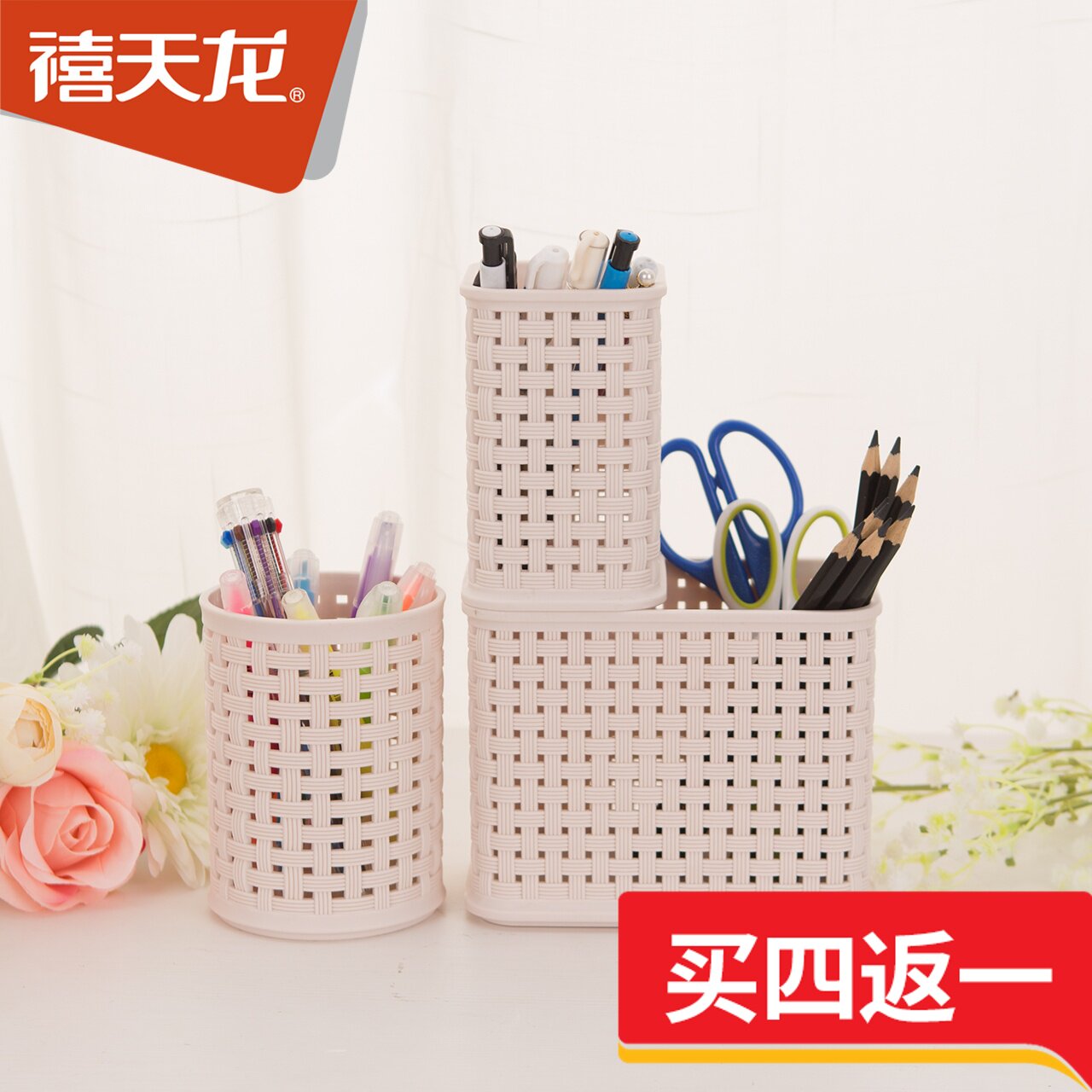 禧天龙笔筒收纳盒学生桌面办公室简约大容量塑料小号仿编织收纳筒