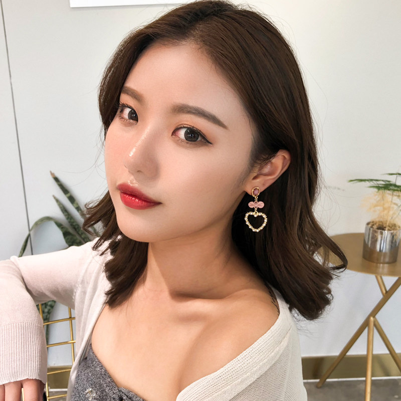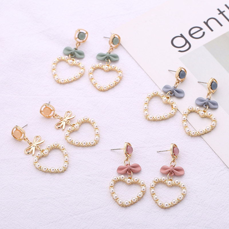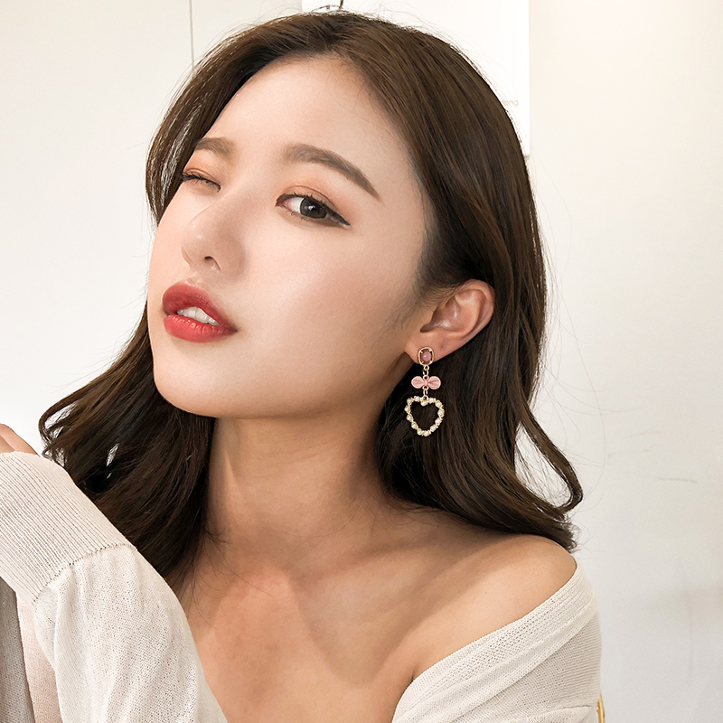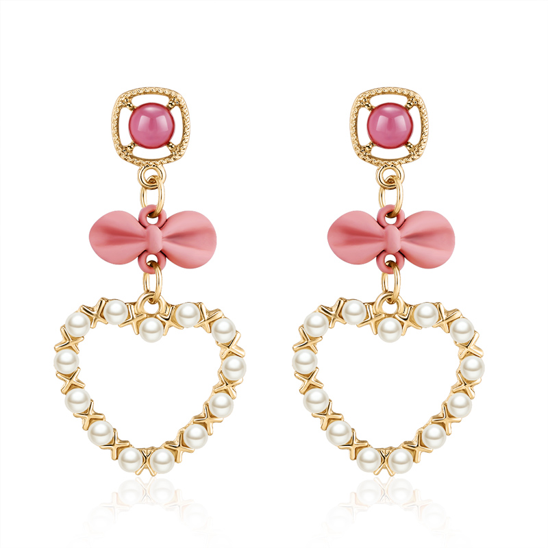 桃心蝴蝶结爱心耳环心形少女耳坠韩国气质个性耳饰品韩版领结耳钉