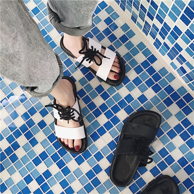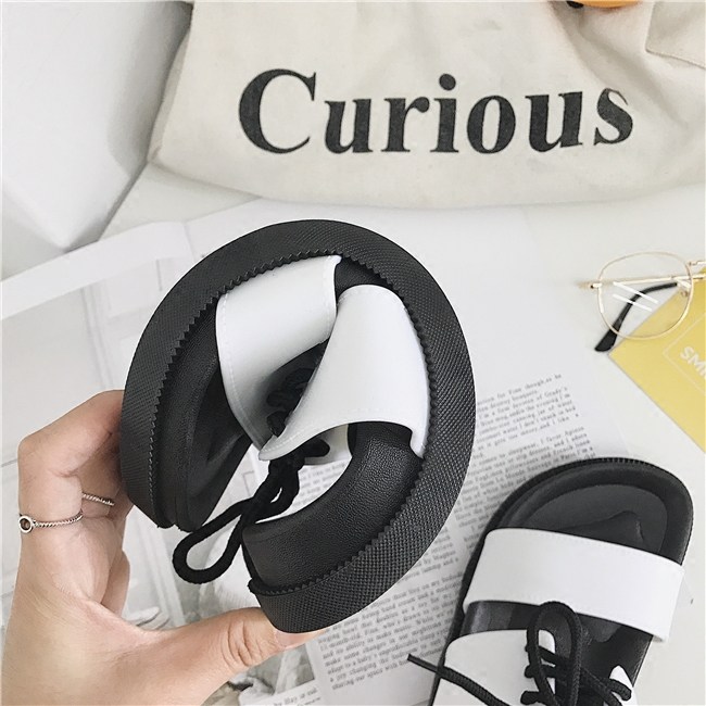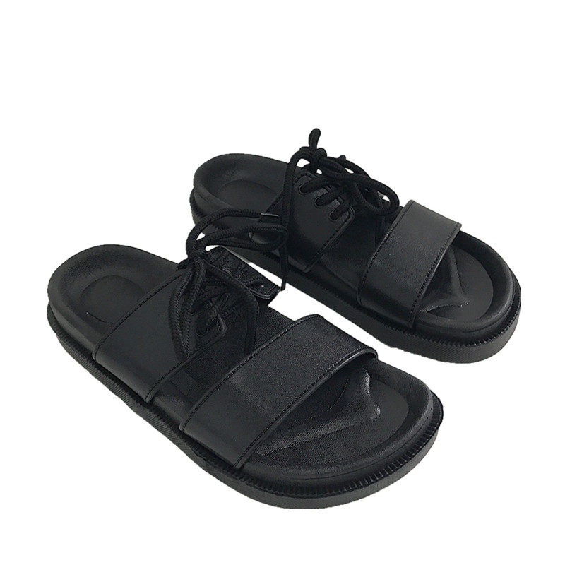 韩版ulzzang原宿拖鞋女情侣夏学生港风厚底系带防滑沙滩凉拖鞋女