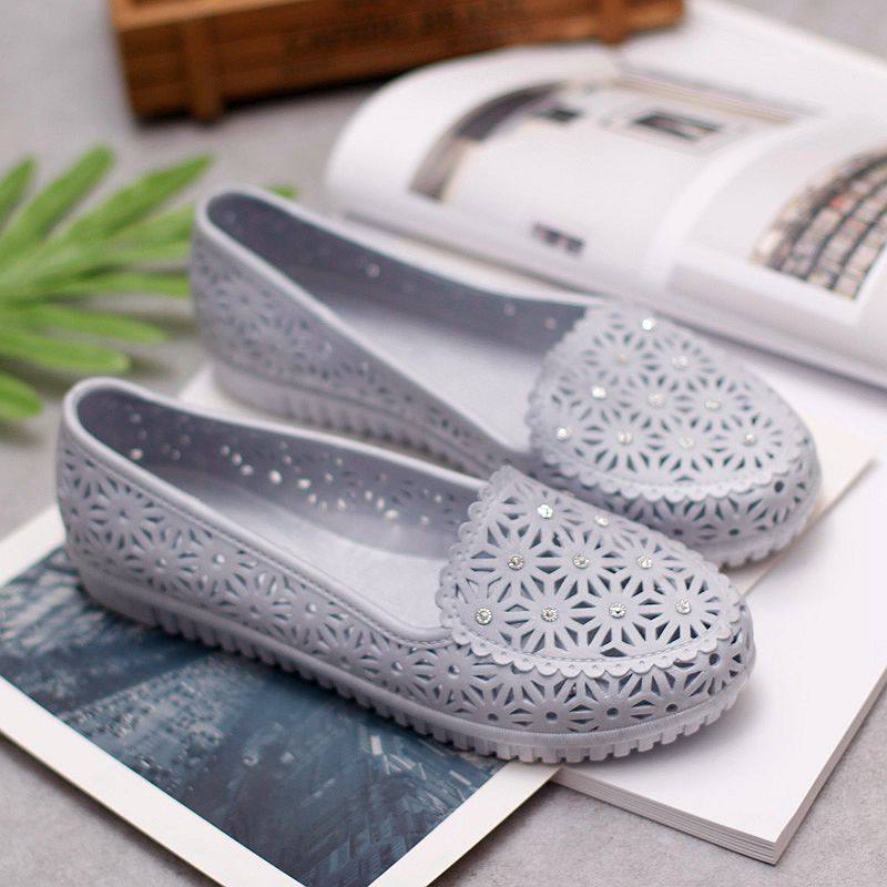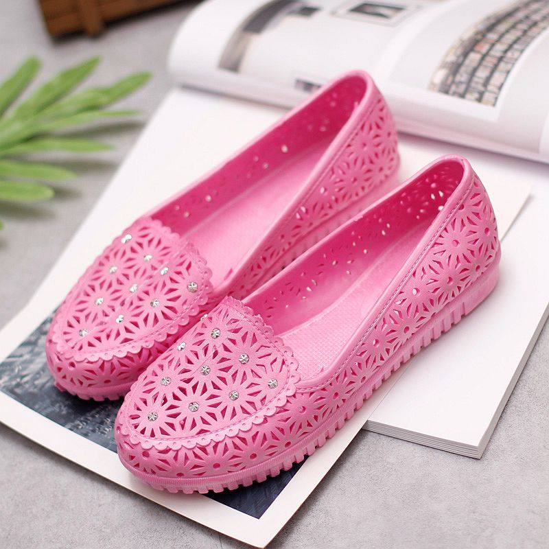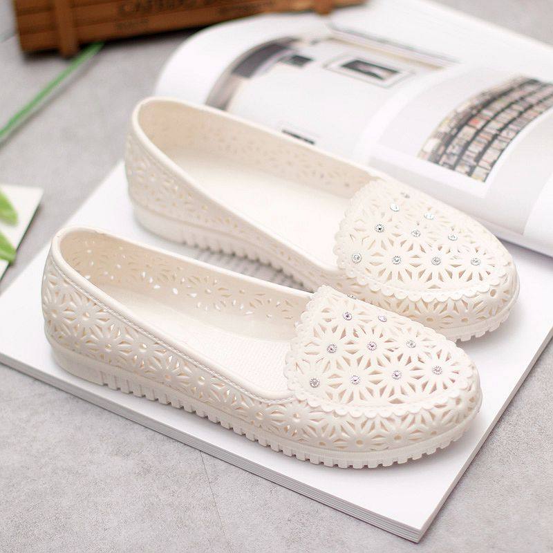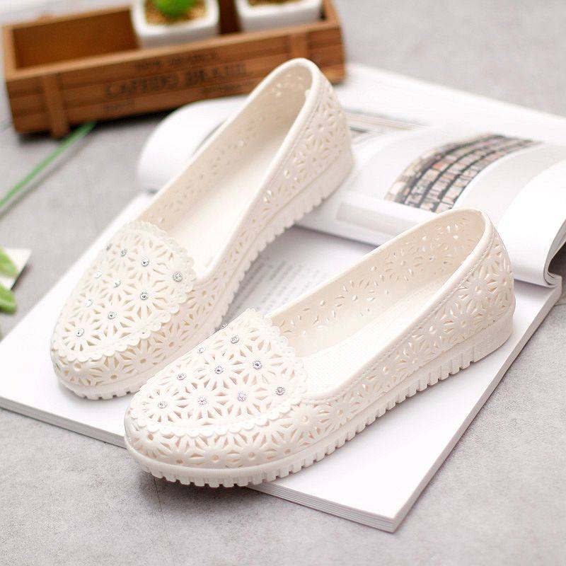 夏季新款鸟巢洞洞鞋超软塑料凉鞋妈妈鞋白色护士鞋水钻镂空凉鞋