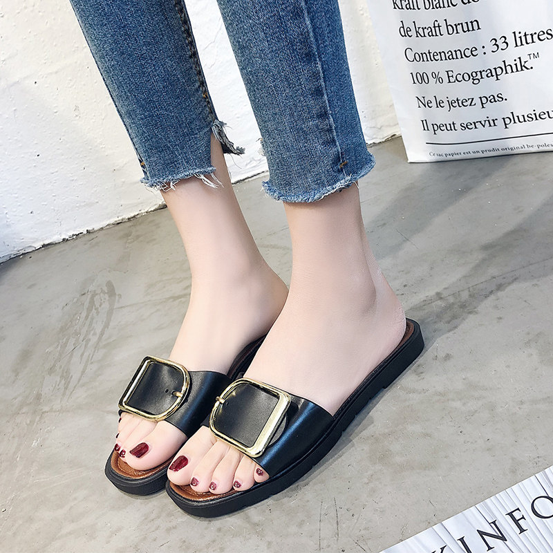2020新款拖鞋女时尚一字拖平底外出沙滩鞋外穿厚底防滑凉拖鞋夏季