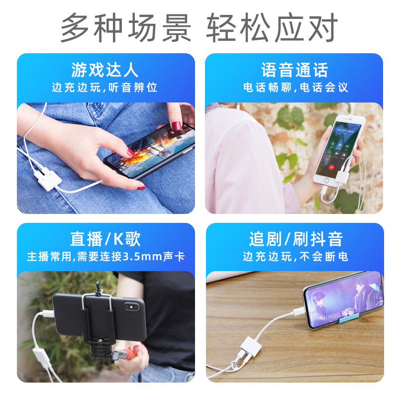 适用苹果耳机转接头iphone7转换器二合一分线器lighting转3.5mm充电器手机7/8/x/xs/xr/11/pro/max/plus正品P