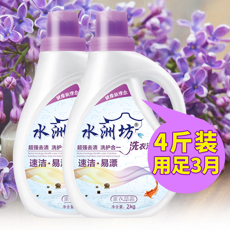 水洲坊4斤洗衣液香持久留香2kg家庭装薰衣草深层洁净去渍机洗手洗