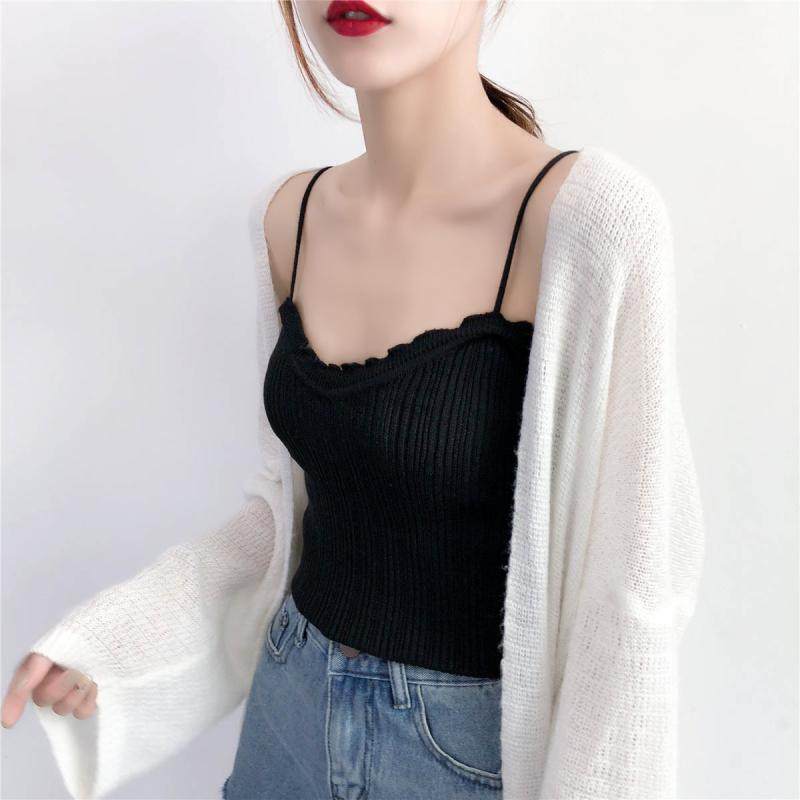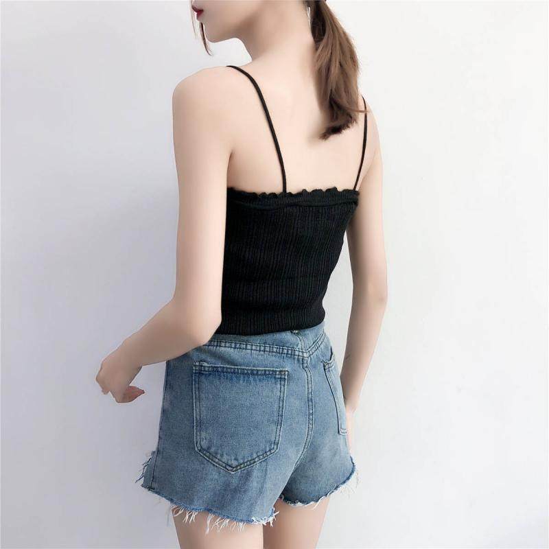 春夏秋冬季新款韩版女装吊带V领木耳边裹胸显瘦修身针织背心女