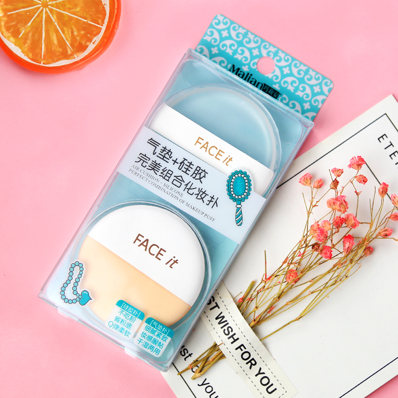 2个装 玛莉安bb霜气垫粉扑圆形透明硅胶粉扑化妆棉海绵干湿两用