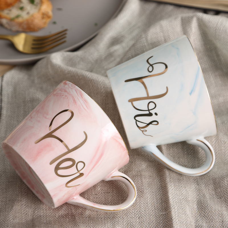 ins水杯牛奶杯大理石纹陶瓷马克杯漱口杯早餐杯咖啡杯情侣杯带盖