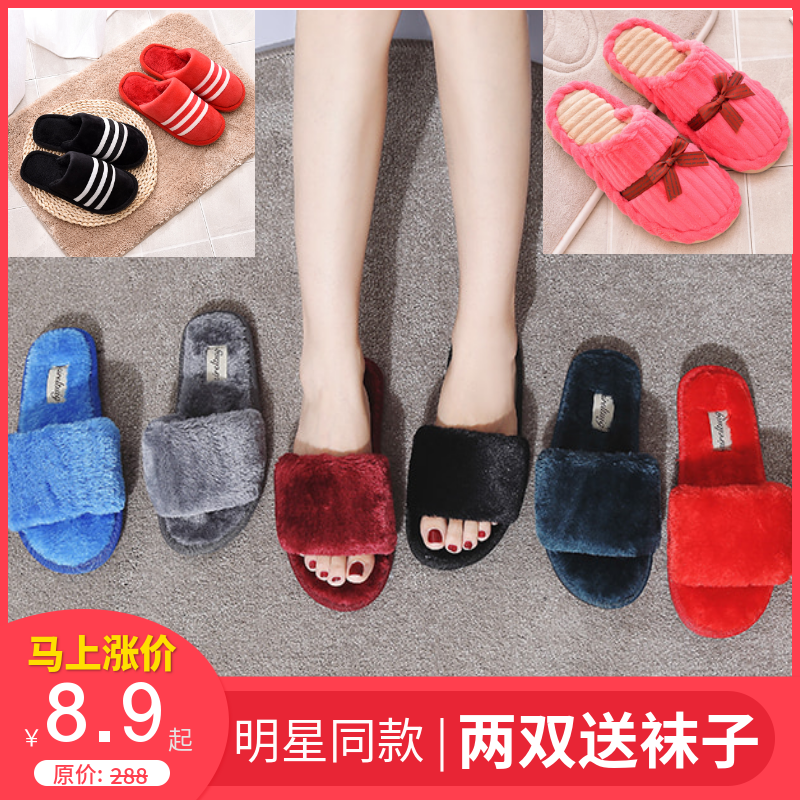 欧美风软底防滑一体拖情侣平底男女冬季秋室内居家居一字毛毛拖鞋