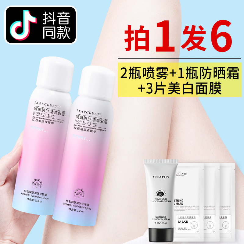 红石榴隔离防晒霜喷雾学生女全身面部保湿美白遮瑕三合一防紫外线