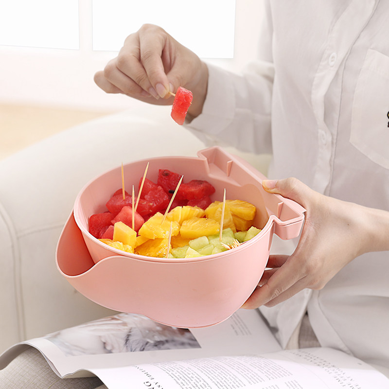 双层水果盘沥水篮家用懒人糖果盘盒创意厨房客厅嗑吃瓜子盘塑料