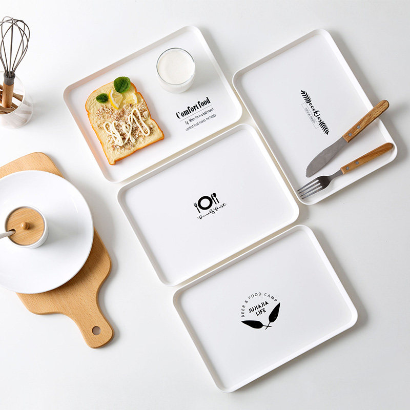 居家家 北欧风长方形盘子家用简约早餐盘 塑料茶盘餐盘甜品小托盘