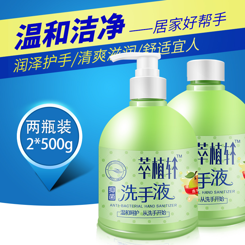 萃植轩500g*2瓶抑菌洗手液男女儿童宝宝家用滋润清洁清香型