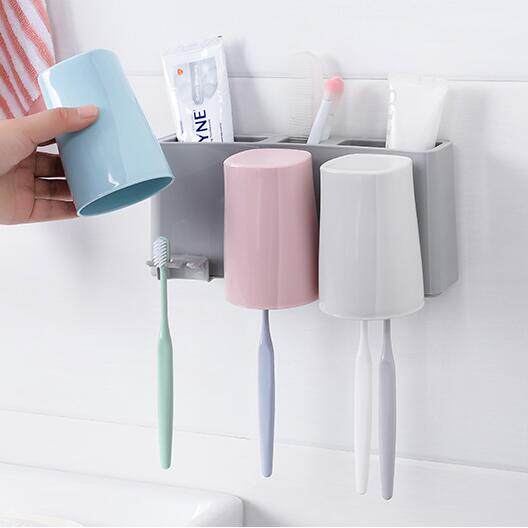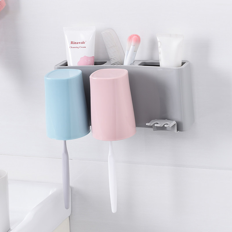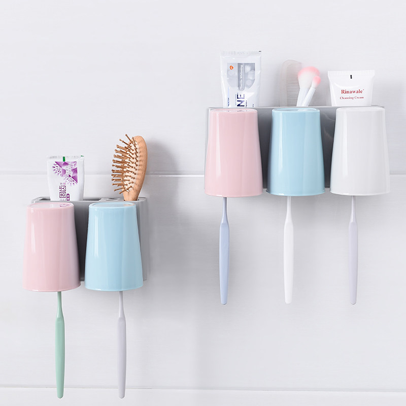 免打孔壁挂牙刷架漱口杯洗漱套装创意牙膏牙刷置物架牙杯架牙膏架