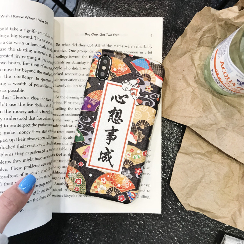诸事皆顺心想事成 iphone xs max苹果X/Xs/XR手机壳女款6splus/8/7p立体浮雕软壳个性文字情侣款全包防摔潮男