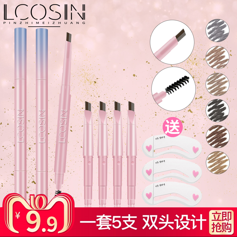 5支双头水雾眉笔 黑色不脱色自然灰色持久初学者女化妆师专用正品