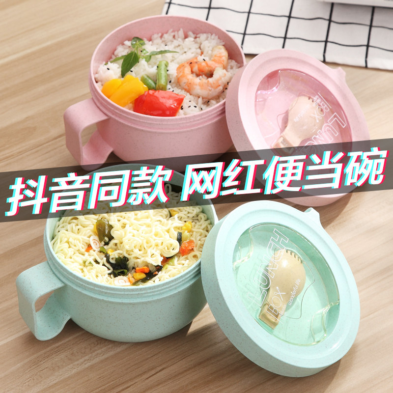 小麦秸秆泡面碗带盖便当碗学生日式大号可爱快餐杯宿舍泡面杯饭盒