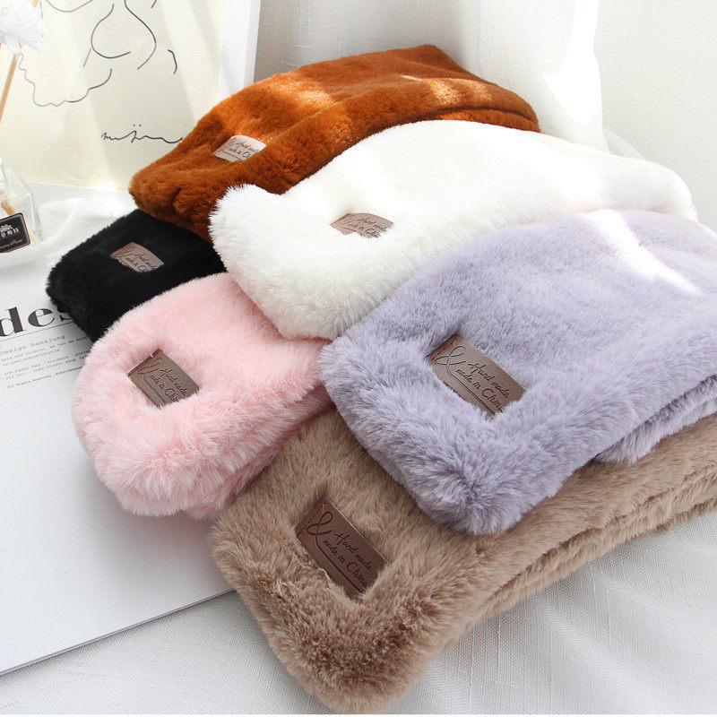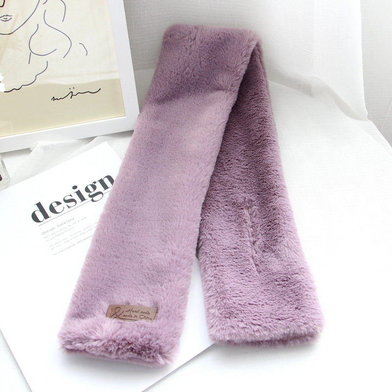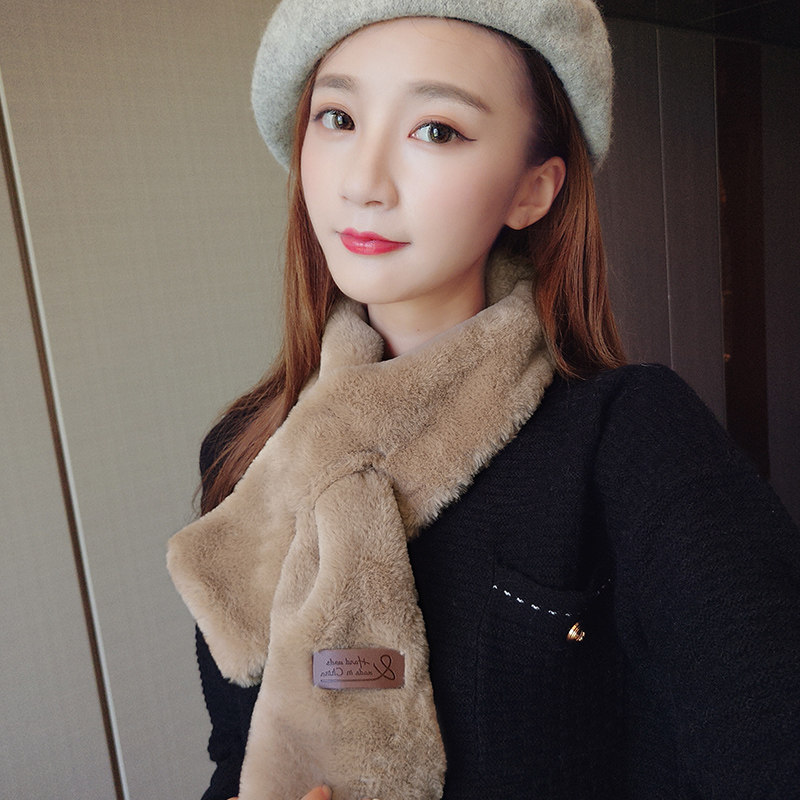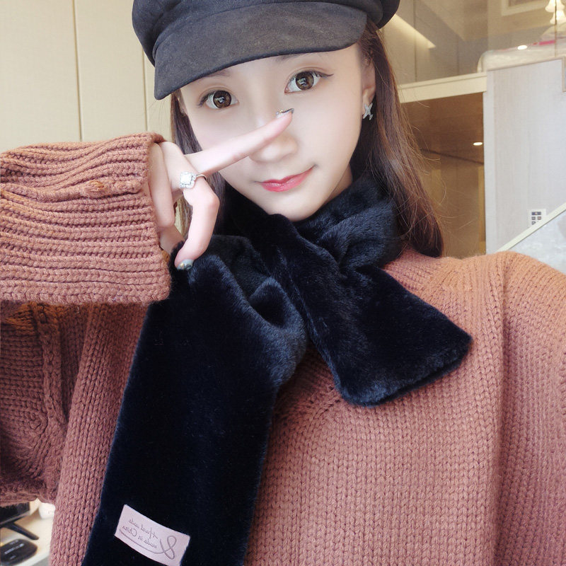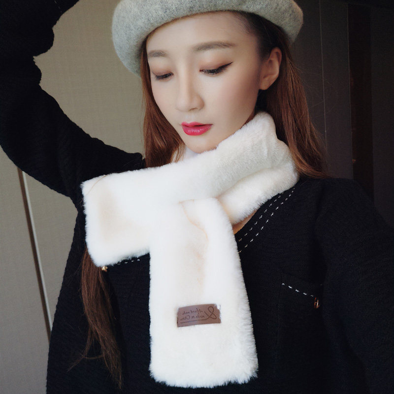 围巾女韩版2019秋冬新款仿獭兔毛时尚百搭纯色保暖学生款加厚围脖
