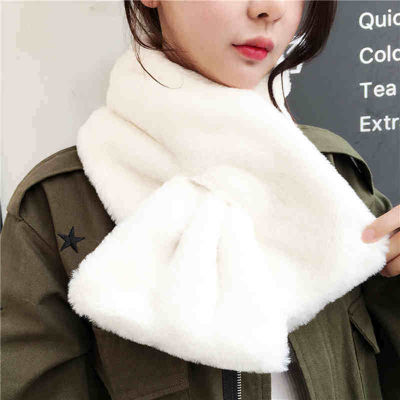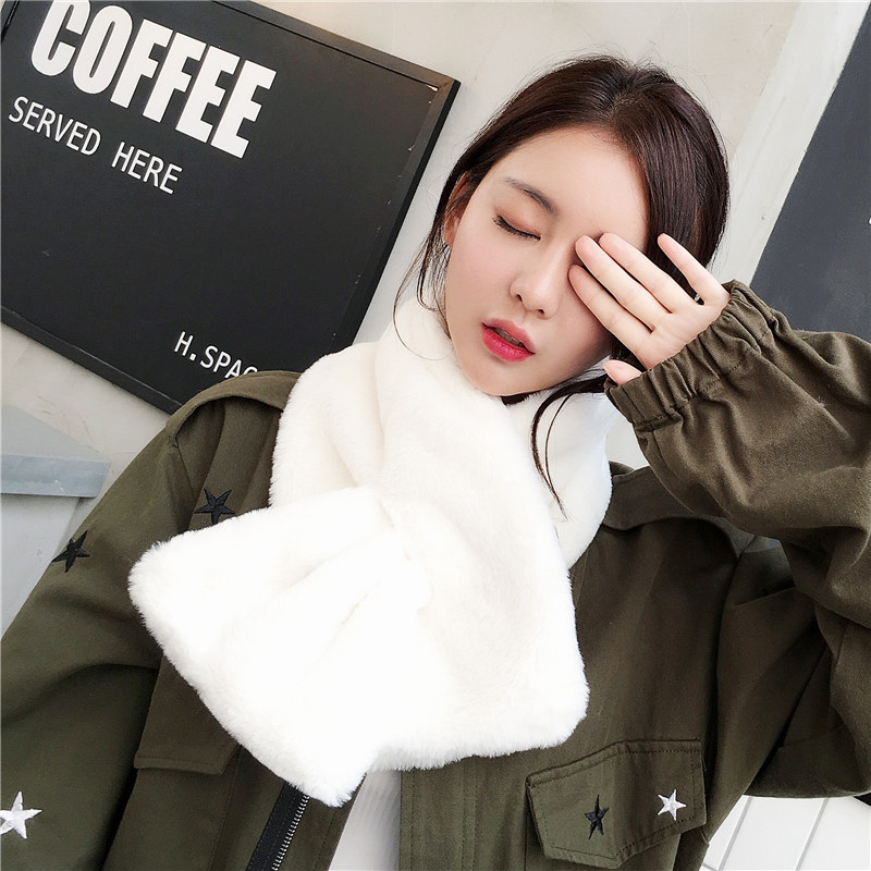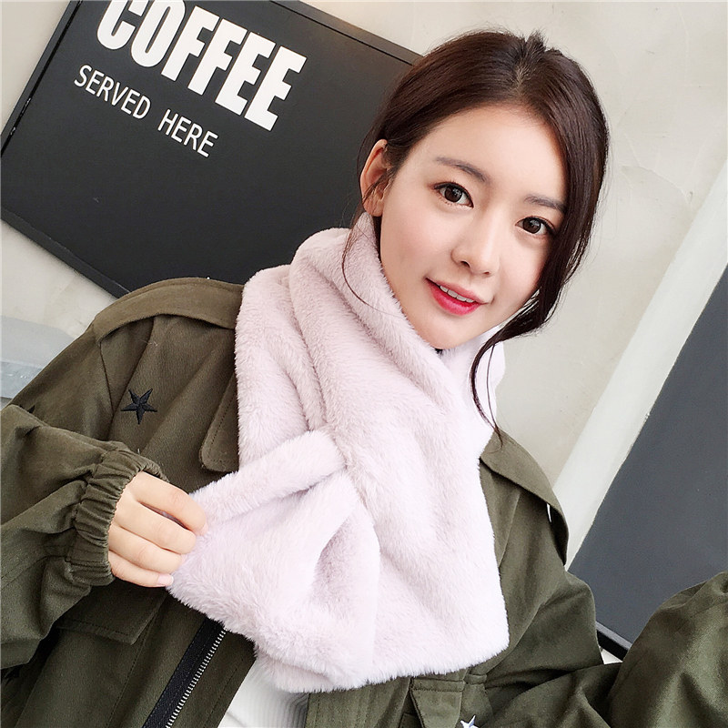 韩版围巾女仿獭兔毛原宿毛围巾冬季韩国学生毛领子日系交叉围脖