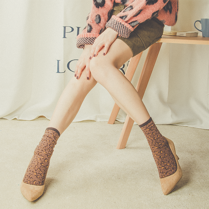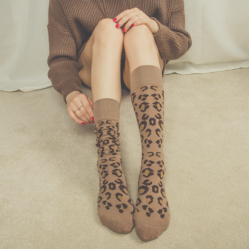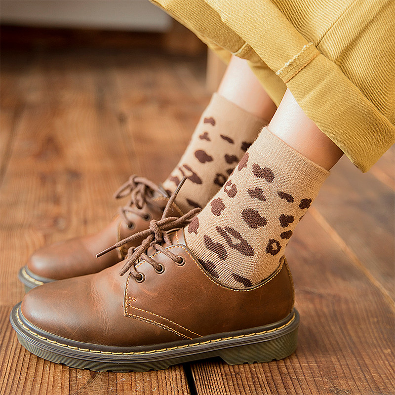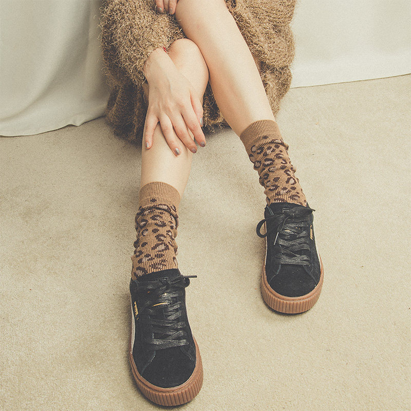 欧美豹纹袜子女纯棉中筒春秋个性时尚洋气韩国版潮堆堆袜网红同款